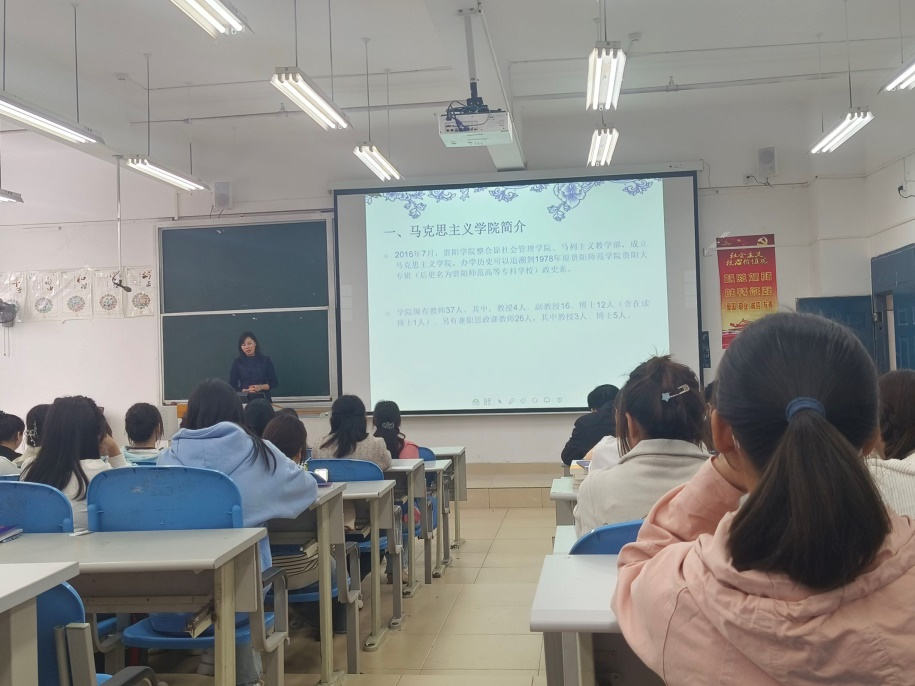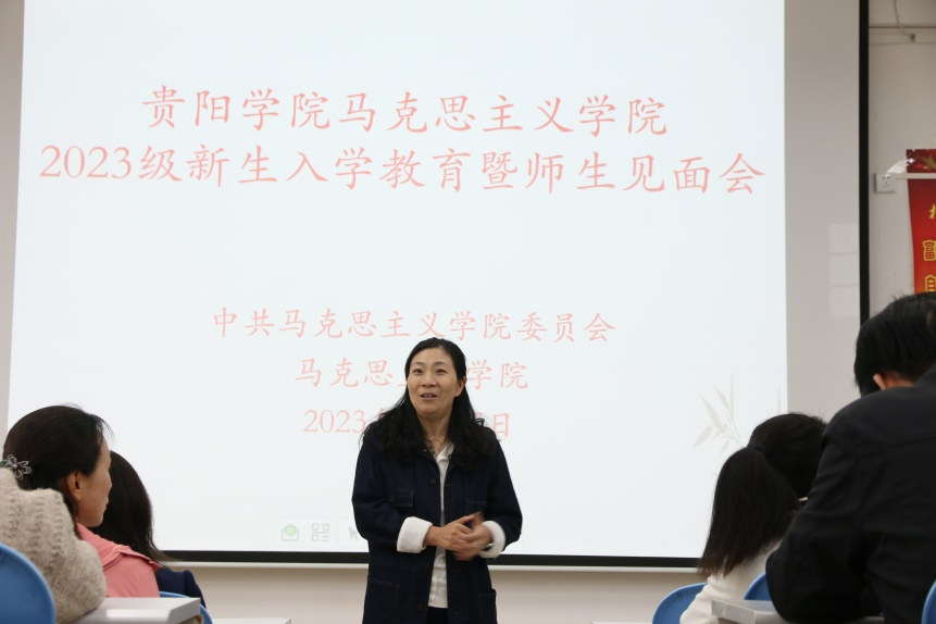 周玲向2023级全体新生隆重介绍了出席活动的各位老师并鼓励同学们敢于追梦,立志考研,成就自我。