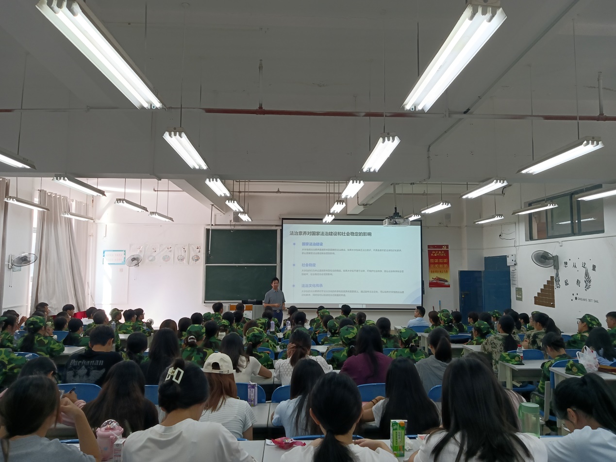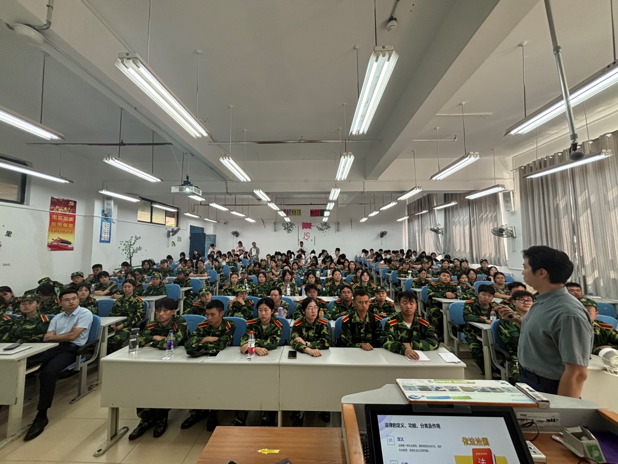 刘明结合工作实际,从法律基础知识、宪法与公民权利、预防电信诈骗教育、校园安全及防范、网络安全与隐私保护、维权意识与途径和法治文化实践活动七个方面为同学们作了深入浅出的讲解,并鼓励同学们积极参加社会实践活动。