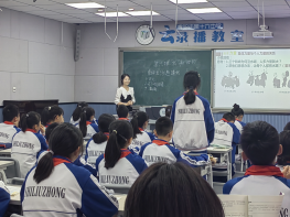 2023年4月20日上午,betway西汉姆联平台2023届思想政治教育专业毕业生在十六中进行毕业实习公开课汇报。betway西汉姆联平台教师代表倪幸媛和王俊斐,贵阳市第十六中学副校长杨梦影、教导主任付维玲,以及道法教研组教师李海燕、冯薇等参加了此次公开汇报课。