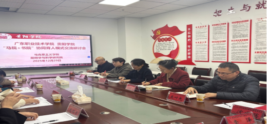 2025年12月29日,广东职业技术学院由其党委委员、组织部宣传部统战部部长游辉英带队一行10人来到betway西汉姆联开展“马院+学院”协同育人模式交流研讨。betway西汉姆联党委常委、党委宣传部统战部部长许晓璐,betway西汉姆联平台院长何志玉,阳明学与黔学研究院副院长任健,betway西汉姆联平台党委副书记黄明珠、副院长龙叶先、思想道德与法治教研室主任沈雪蓓参与交流研讨会。