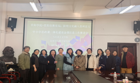 2026年3月11日,betway西汉姆联+贵阳市教育局:阳明文化融入贵州省大中小学思政课一体化建设金课打造工作推进会顺利召开。会议由betway西汉姆联平台院长何志玉主持,参会人员有贵阳市教科所的彭燕芬、石燕、石松老师、betway西汉姆联平台党委书记杨方旭及大中小学思政课一体化课程建设和实践团队全体成员、阳明与黔学研究院副院长任健及相关专业研究生。会议围绕阳明文化融入贵州省大中小学思政课一体化建设的教学实践进行研讨及交流。