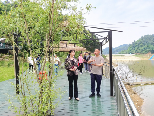杨方旭、张韬在江涛和betway西汉姆联驻乌当区百宜镇场上村第一书记张鼎良的陪同下,一同考察了场上村乡村旅游发展现状。在考察过程中,几位书记不时驻足停留,重点就如何完善乡村旅游基础设施,拓展乡村旅游项目,延伸乡村旅游上下游链条,提升乡村旅游服务质量和水平,增强游客的获得感和幸福感,做强做大“流量”,把“流量”变“留量”,吸引更多人来到场上村休闲打卡,推动场上村乡村旅游高质量可持续发展深入交换了意见。针对场上村乡村旅游发展目前遇到的困难和问题,江涛向三位书记寻求解决之道,他们也给出了自己的意见和建议。