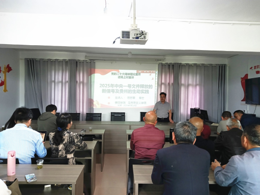 betway西汉姆联平台教师杨志军博士作了题为《2025年中央一号文件释放的新信号及贵州的生动实践》的主题宣讲。他紧密结合场上村的既有条件,从土地、资金、人才三个关键要素展开,通俗易懂地分析了场上村的发展优势和发展方向,其间还不时与村民互动交流。