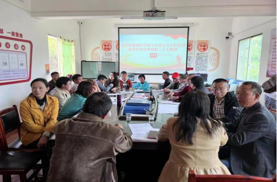 党的二十大召开后,学院以师生支部为载体,迅速组建理论宣讲团,结合农村实际,宣讲团通过走村串户、深入田间地头,以群众听得懂、喜欢听、听得进的方式宣讲党的二十大精神,让党的二十大精神家喻户晓,切实汇聚起全面推进乡村振兴的磅礴力量。