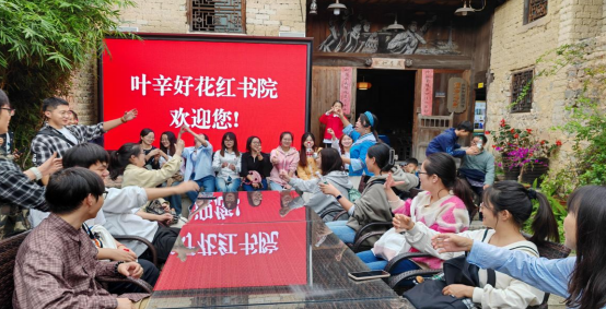 离开第一堂屋,一行人前往叶辛好花红书院,在书院开展了一场文化交流学习会,同学们对布依族语言、文化、艺术表现出浓厚的兴趣与热情。师生们还与好红花辉岩小学的师生们共同探讨学习布依族特色舞蹈—布依粑棒舞。