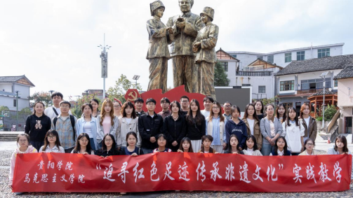10月19日,马克思主义学院党委委托,学生党支部书记张秋丹老师带领学院师生一行40余人,到惠水好花红村开展“追寻红色足迹 传承非遗文化”研学实践。