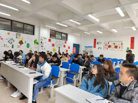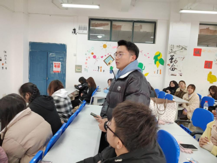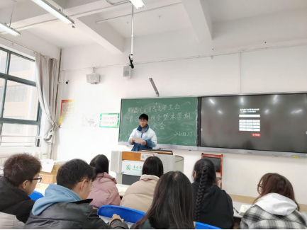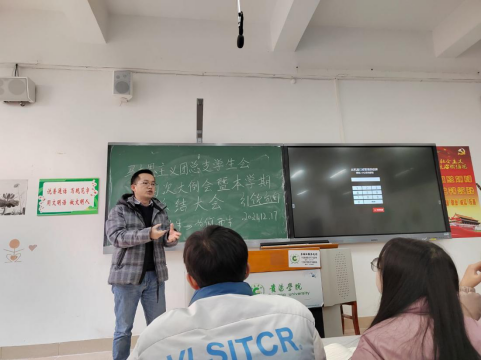 之后,曹正勇老师对一年来的工作进行了总结发言。他首先感激同学们对他的接纳、信任、包容、鼓励和支持,感动同学们对他工作的帮助,感恩这个美好伟大的时代,让大家可以在实现中华民族伟大复兴的进程中绽放青春光彩。其次,他认为团总支学生会一年来做到了坚定信念、守正创新,发动师生、广泛参与,团结协作、奋发有为,服从安排、着眼大局,取得了不少的成绩,但同时也存在着不少的问题。