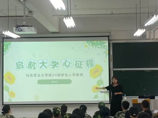 9月27日下午,betway西汉姆联平台辅导员龙珈仪在3299教室为2024级全体新生作了主题为《校纪校规及心理健康》的讲座。