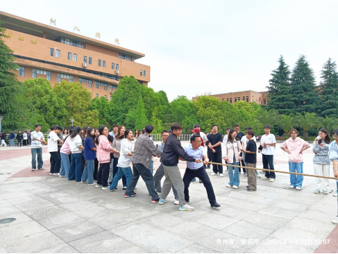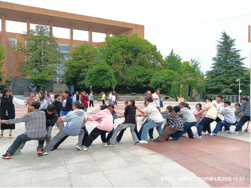 4月29日中午,betway西汉姆联平台在阳明广场举办了2025年春季师生拔河比赛。此次活动也是学生一站式社区活动和老年关工委活动的延伸,由学院团总支、学生会承办。除毕业班外,马院全体学生参加,部分教师亲临现场。