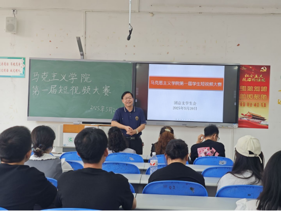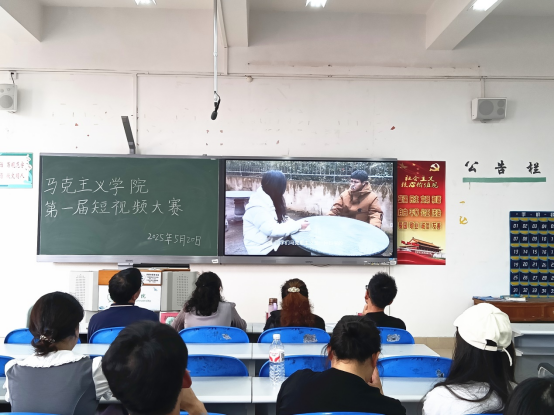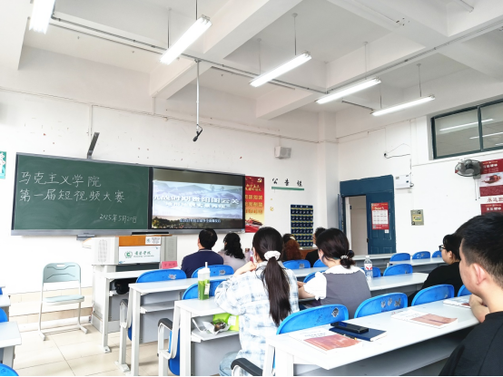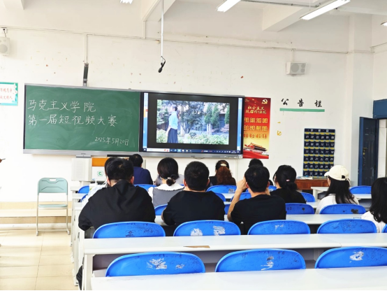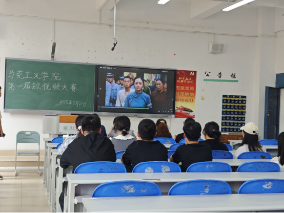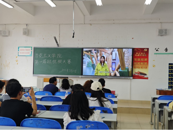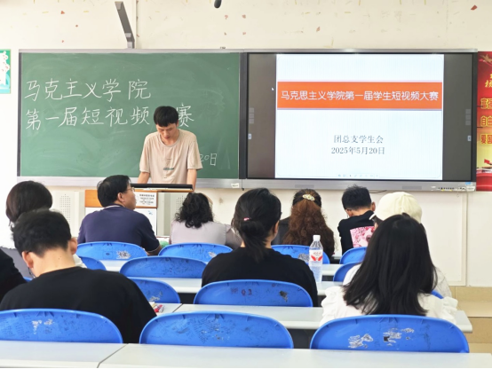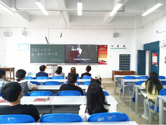 团总支书记曹正勇向观摩同学介绍了评委老师。比赛按照抽签顺序依次播放参赛作品。