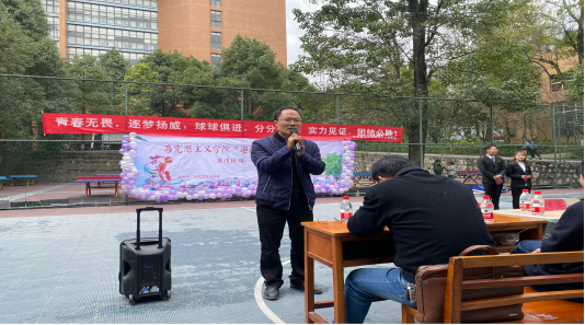 最后,周玲为“迎新杯”篮球赛举行了发球仪式。在场师生合影留念。