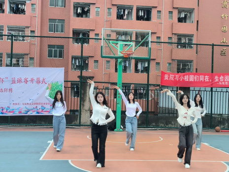 何志玉为迎新杯篮球赛开球。