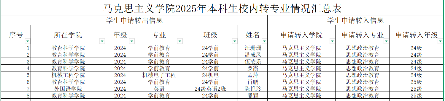 根据《普通高等学校学生管理规定》(教育部令第41号)《betway西汉姆联本科生校内转专业实施办法(试行)》(筑院发字〔2022〕22号)等文件规定,按照教务处发布的《betway西汉姆联2025年本科学生转专业工作方案》文件要求,betway西汉姆联平台共接收汪珊珊、陈艳玲等8名同学的转入申请。