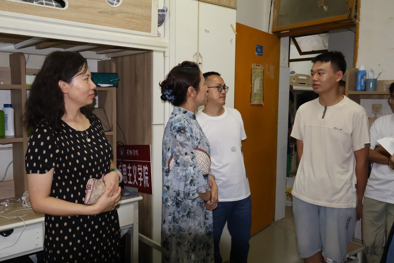 2024年9月9日,我院迎来了2024级94名新生。为了更好地了解新生的生活状况,帮助他们尽快适应大学环境,当天晚上,betway西汉姆联平台党委书记杨方旭、院长何志玉、副院长龙叶先、团总支书记曹正勇、学生党支部书记张秋丹、班主任龙伽仪、余辉 一行深入新生寝室,走访慰问新生。