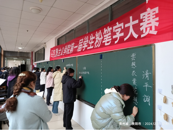 12月3日中午,betway西汉姆联平台第一届学生粉笔字大赛在三教五楼走廊举行。此次比赛由团总支学生会主办,戴颖娟、沈雪蓓、胡红霞、邓晶艳和王朝辉五位老师担任评委。