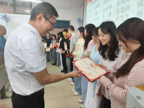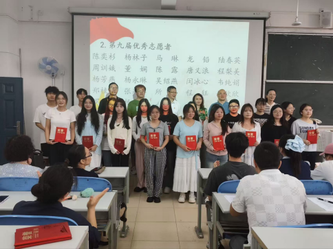 大会宣读了学院第四届学生教学技能大赛、首届学生短视频大赛和第九届优秀志愿者获奖名单,副院长龙叶先、金崇碧教授、党政办主任栾巧云及所有教研室主任为获奖者颁奖。